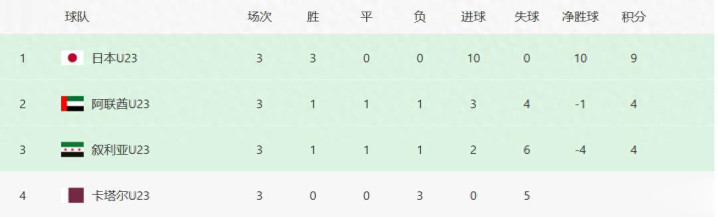 北京时间1月14日凌晨,U23亚洲杯结束了B组的两场比赛,日本队2-0轻松击败了卡塔尔队,以小组第一晋级淘汰赛,另外一场比赛,阿篮球队1-1战平叙利亚队,阿联酋队依靠净胜球的优势,小组第二晋级,这样八强已经决出了六个席位,只剩下D组还没有决出出线的球队,而D组目前国足排名第一,四支球队都是有出线,也都有出局的可能性,是最乱的一个小组。